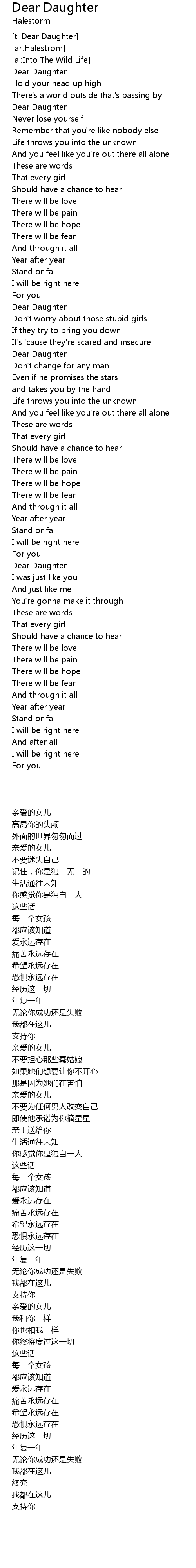 [ti:Dear Daughter] |