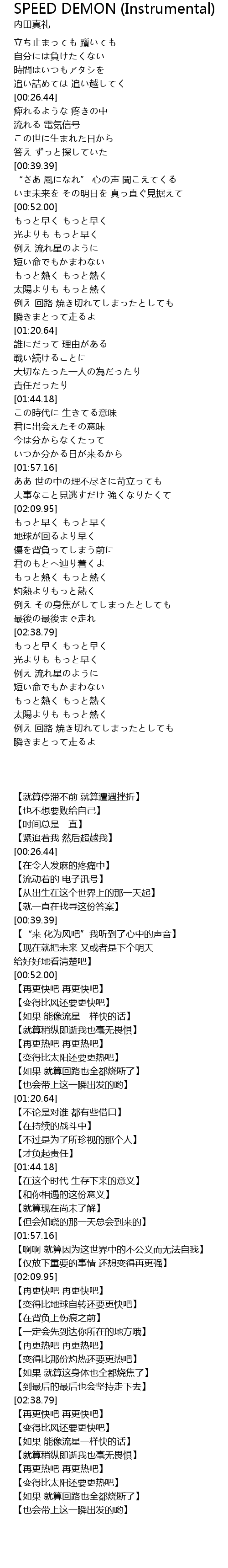 | [03:08.69] | もっと早く もっと早く |