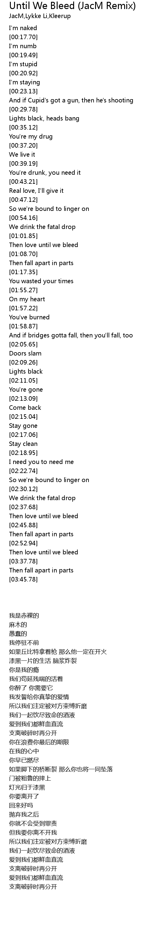 | [01:59.44] | And if bridges gotta fall, then you'll fall, too |