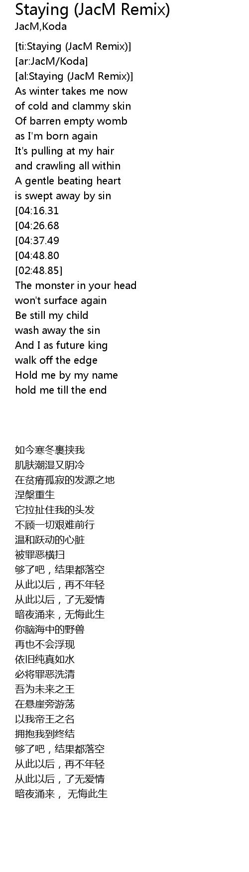 | [ti:Staying (JacM Remix)] | |