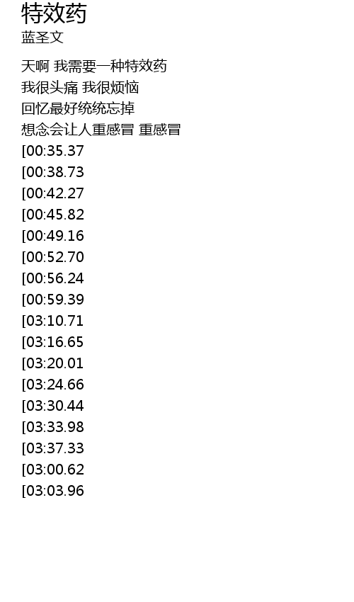 | [03:52.38][03:10.71][02:29.06][01:05.75] | 天啊 我需要一种特效药 |