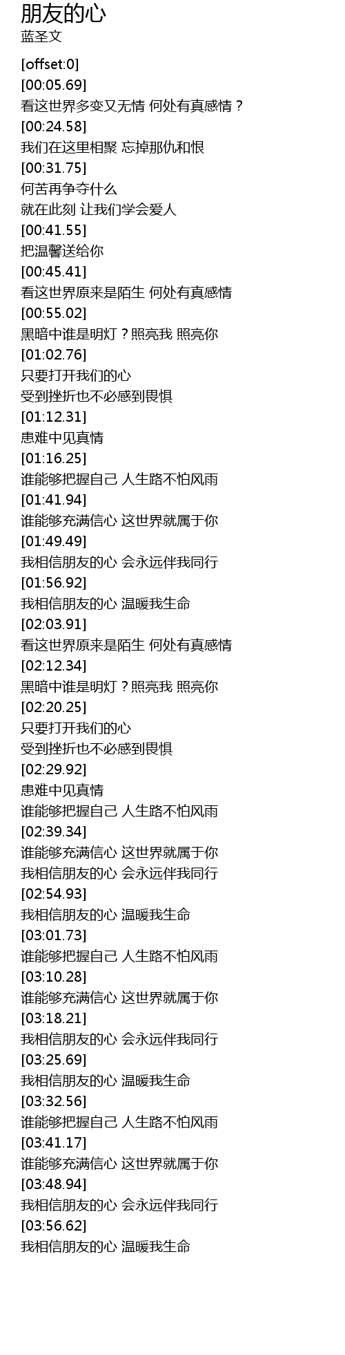 | [02:55.93] | 我相信朋友的心 温暖我生命 |