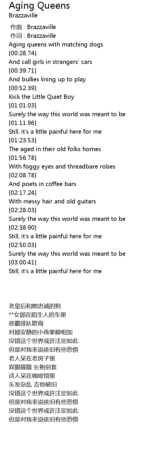 | [00:01.00] | 作词 : Brazzaville |