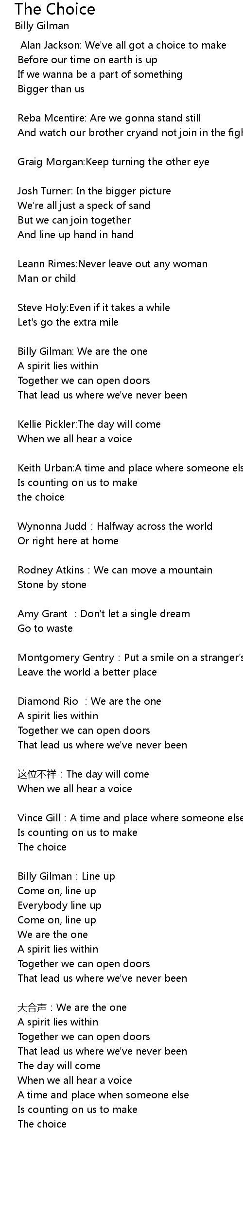 | Billy Gilman: We are the one | |