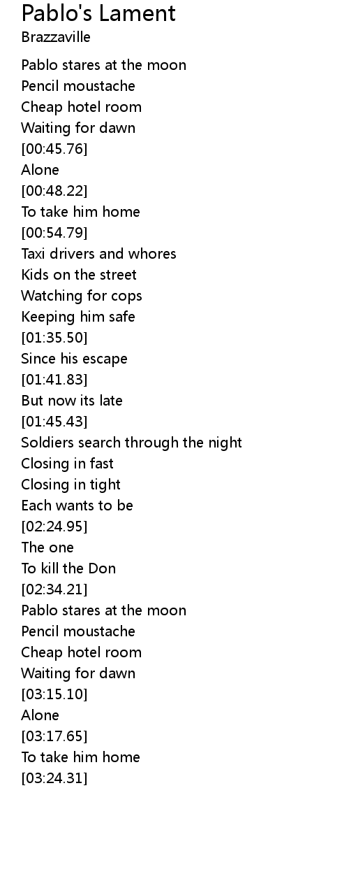 | Song | Pablo's Lament |