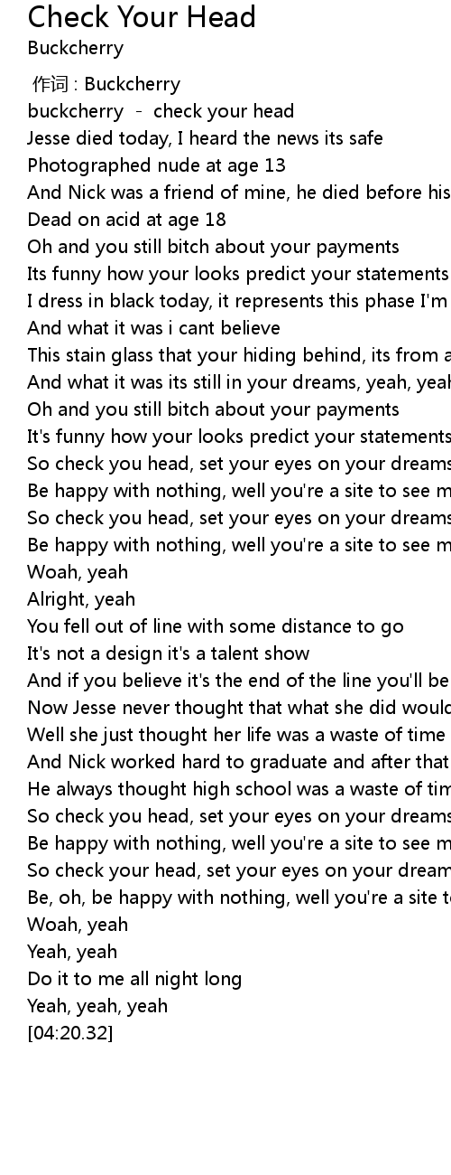 | [00:00.86] | buckcherry - check your head |