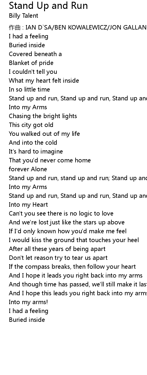 | Stand up and run, stand up and run; Stand up and run, stand up and run | |