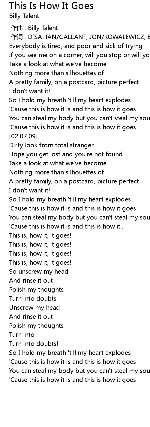 | [01:46.08] | ' Cause this is how it is and this is how it goes |