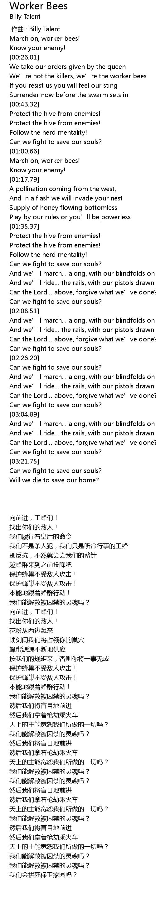 | [00:30.45] | We' re not the killers, we' re the worker bees |