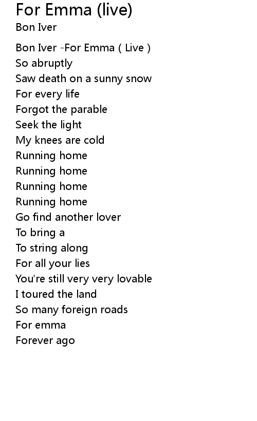 | [00:00.514] | Bon Iver For Emma Live |