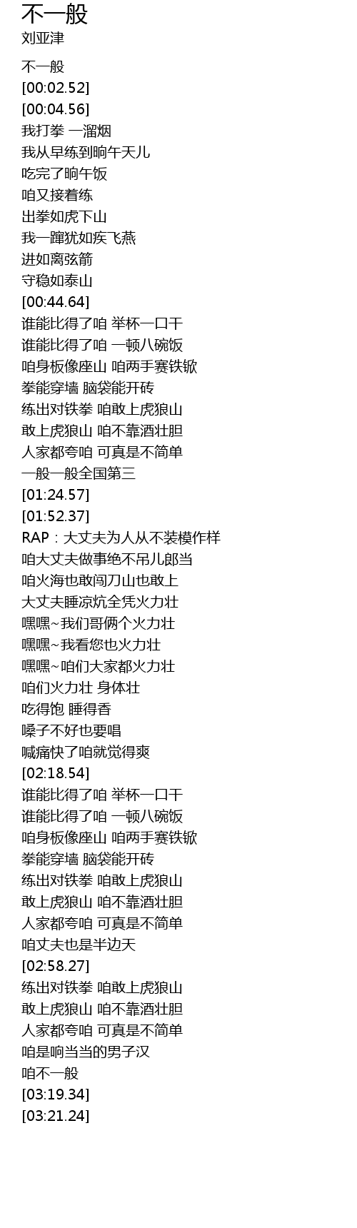 | [02:34.31] | 拳能穿墙 脑袋能开砖 |