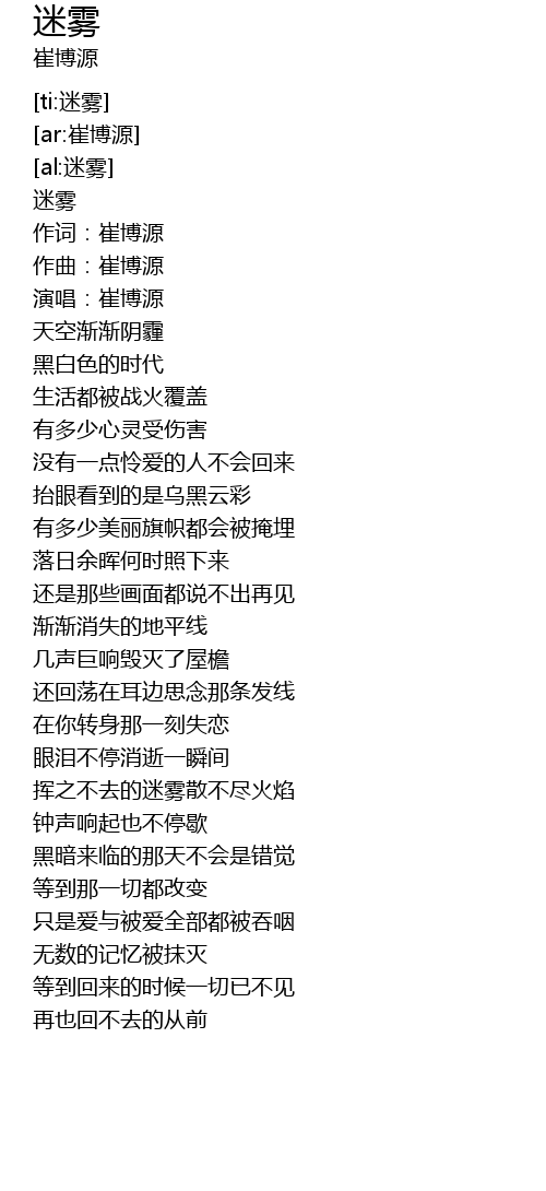 | [00:03.080] | 作词:崔博源 |
