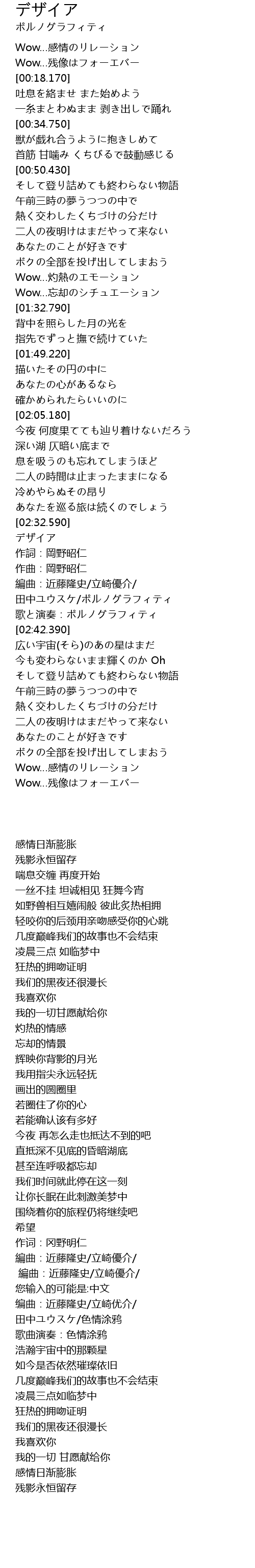 | [02:40.840] | 歌と演奏:ポルノグラフィティ |