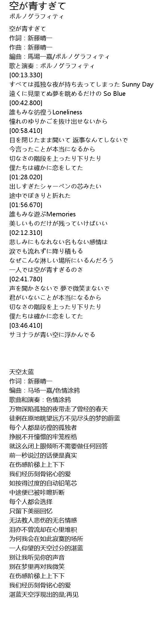| [02:35.500] | 一人では空が青すぎるのさ |