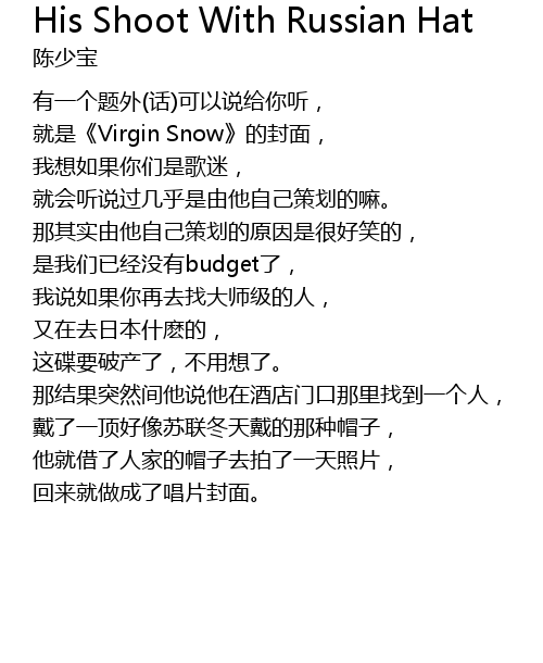 | [00:01.91] | 就是《Virgin Snow》的封面, |