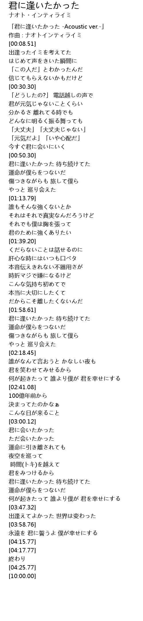 | [00:00.51] | 「君に逢いたかった -Acoustic ver.-」 |