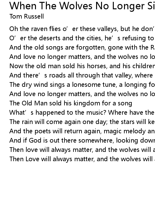 | And the old songs are forgotten, gone with the Raven on the wing | |
