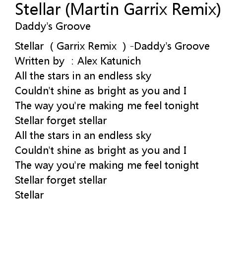 | [00:00.00] | Stellar (Garrix Remix )-Daddy's Groove |