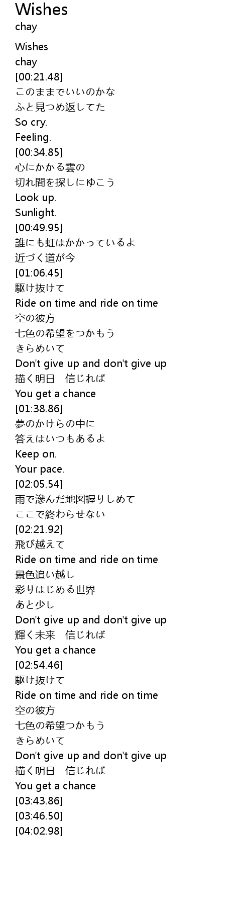| [00:00.00] | Wishes |