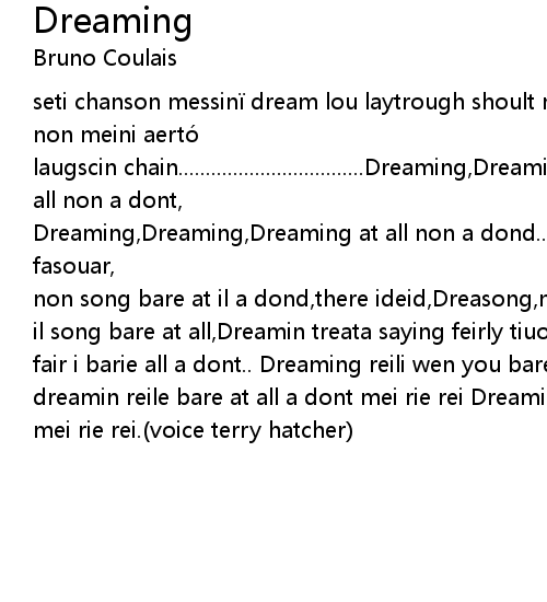 | il song bare at all,Dreamin treata saying feirly tiuoling fairly reie,messing le fair i barie all a dont.. Dreaming reili wen you bare al laytrought lei reie dreamin reile bare at all a dont mei rie rei Dreaming reile bare at all a dont mei rie rei.(voice terry hatcher) |