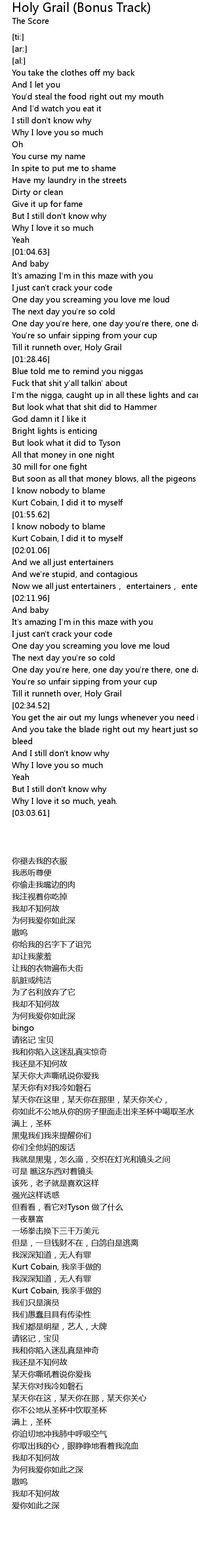 | [02:32.13] | Till it runneth over, Holy Grail |