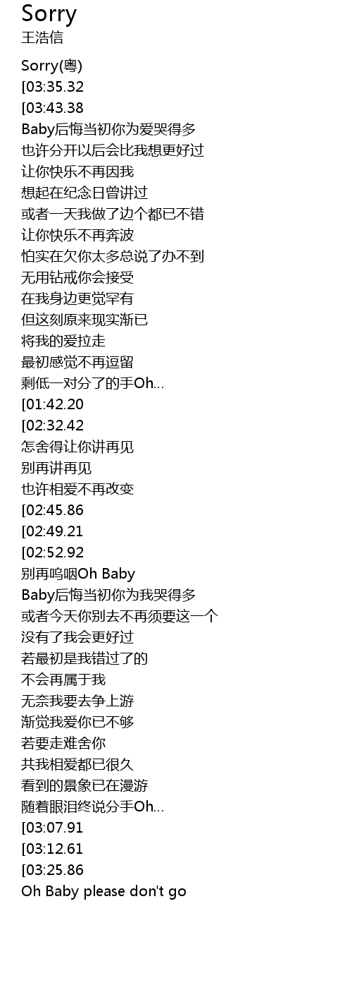 | [00:09.00][03:35.32] | 王浩信-Sorry(粤) |