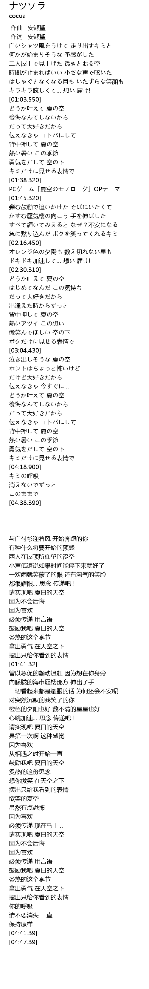 | [01:41.320] | PCゲーム「夏空のモノローグ」OPテーマ |