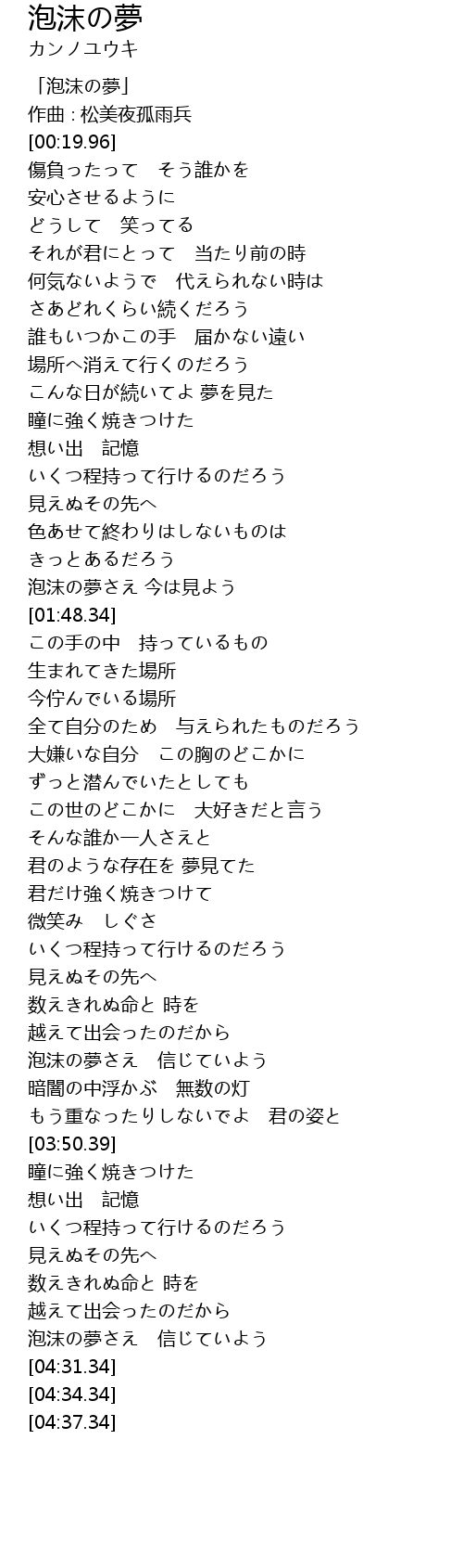 | [00:01.96] | 「泡沫の夢」 |