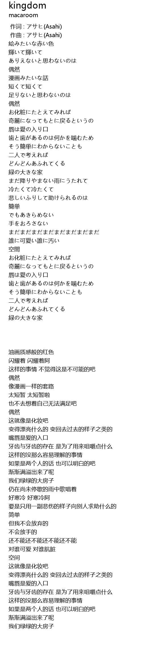 作词 : アサヒ(Asahi) |
