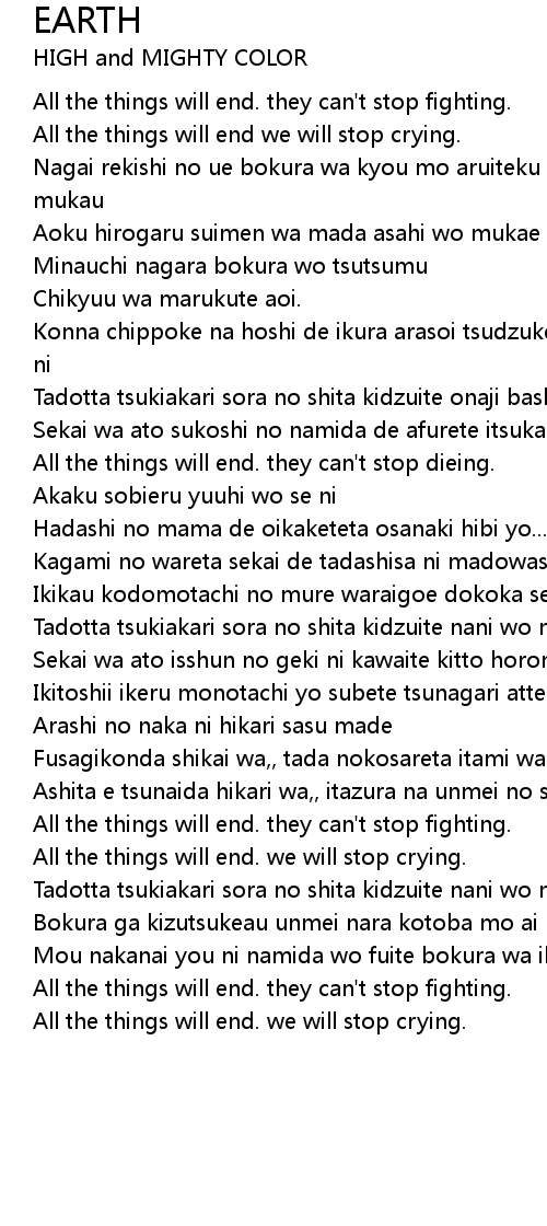 Mou nakanai you ni namida wo fuite bokura wa ikiteku onaji sora no shita |