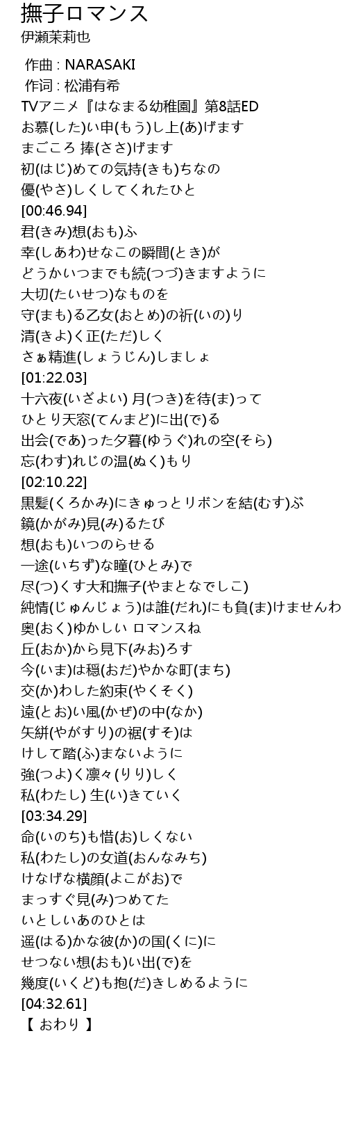 | [02:34.03] | 尽(つ)くす大和撫子(やまとなでしこ) |
