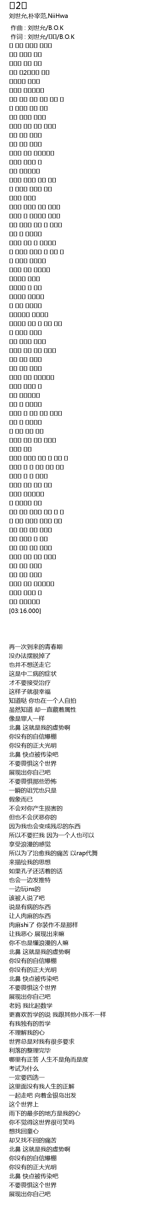 | [00:01.00] | 作词 : 刘世允/니화/B.O.K |