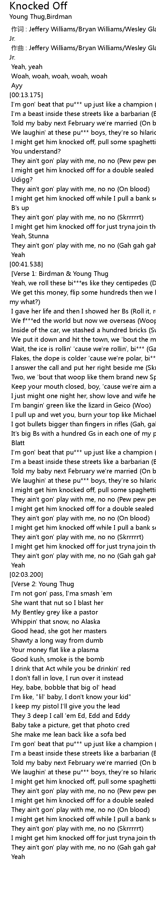 | [00:41.704] [Verse 1: Birdman & Young Thug] | |