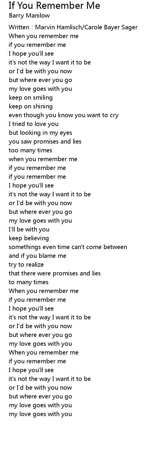 | Song | If You Remember Me |