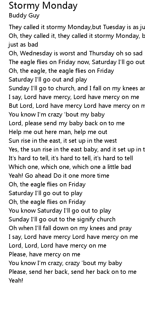 Oh, they called it, they called it stormy Monday, but Tuesday, Tuesday is as just as bad |