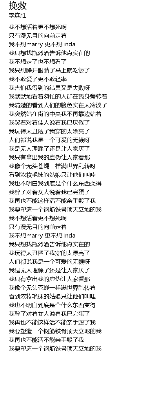 | [00:10.822] | wǒ bù xiǎng huó zhe gèng bù xiǎng sǐ a |