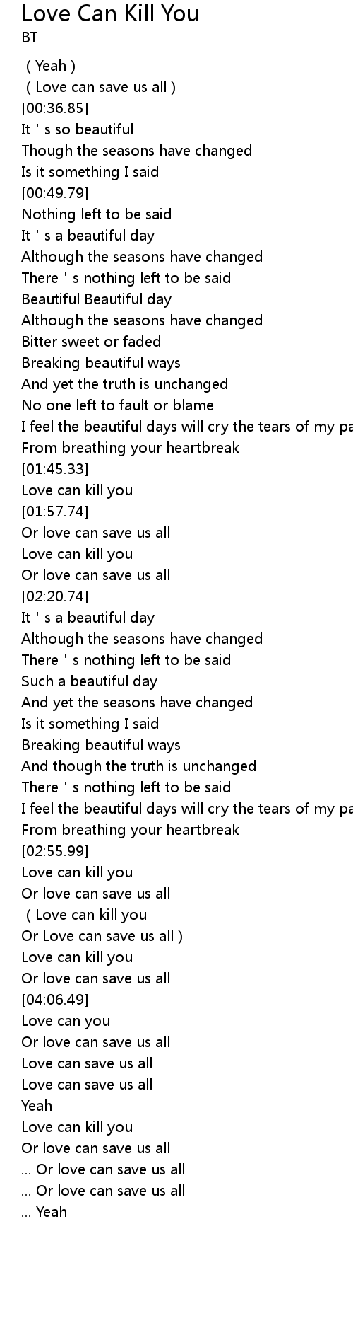 | [01:37.40] | I feel the beautiful days will cry the tears of my pain |