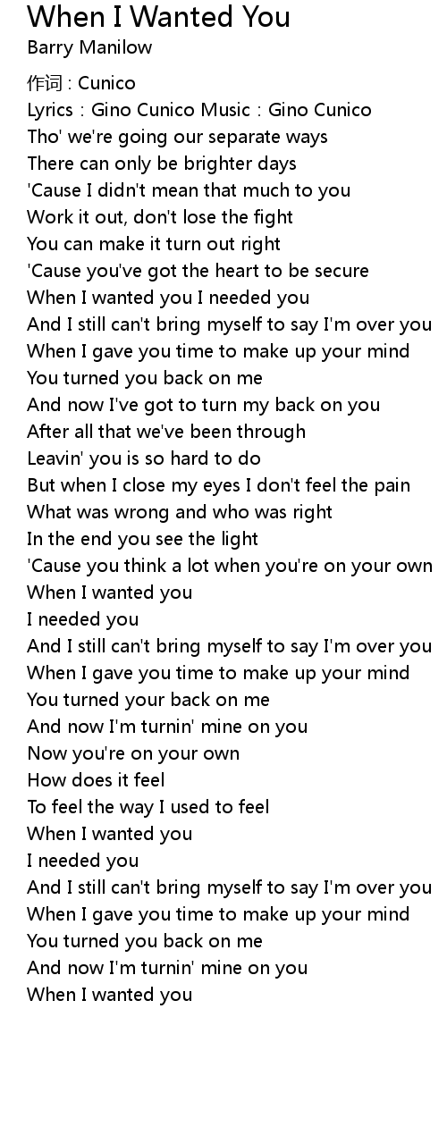 | When I wanted you I needed you | |