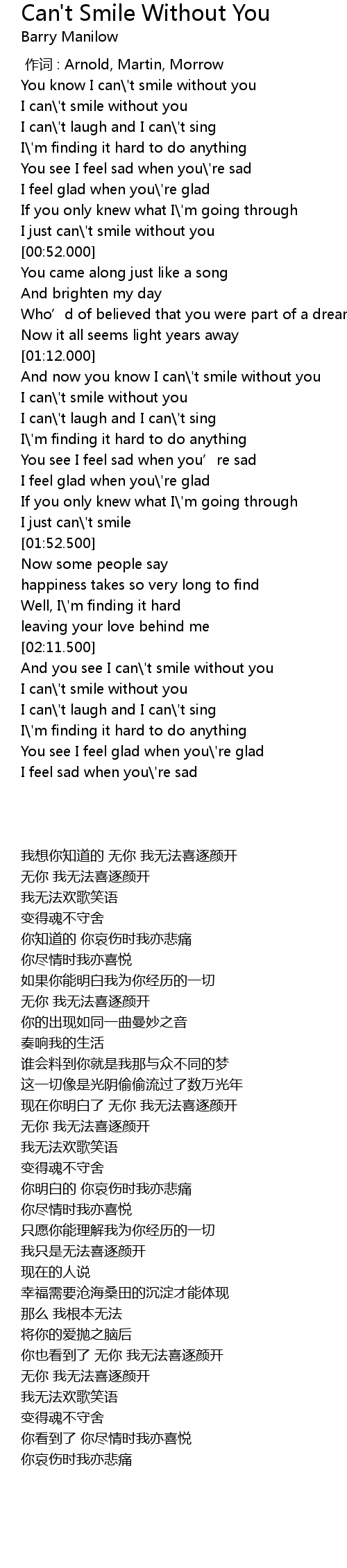 | [00:19.800] | I can' t laugh and I can' t sing |