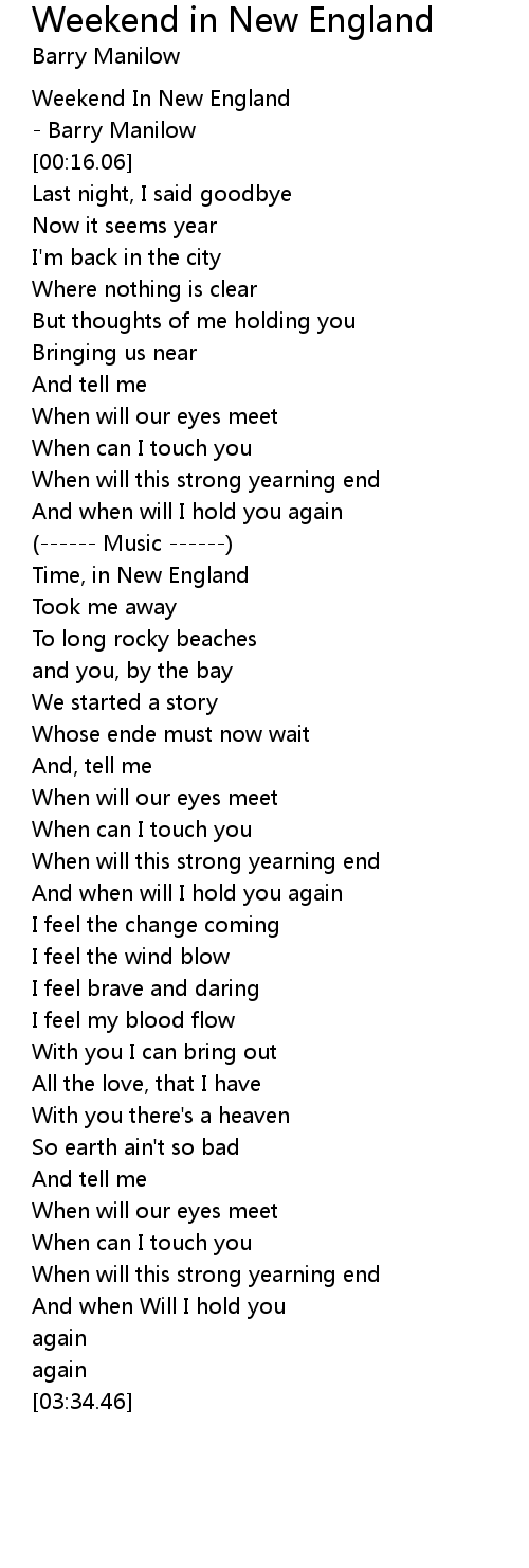 | [00:00.50] | Weekend In New England |