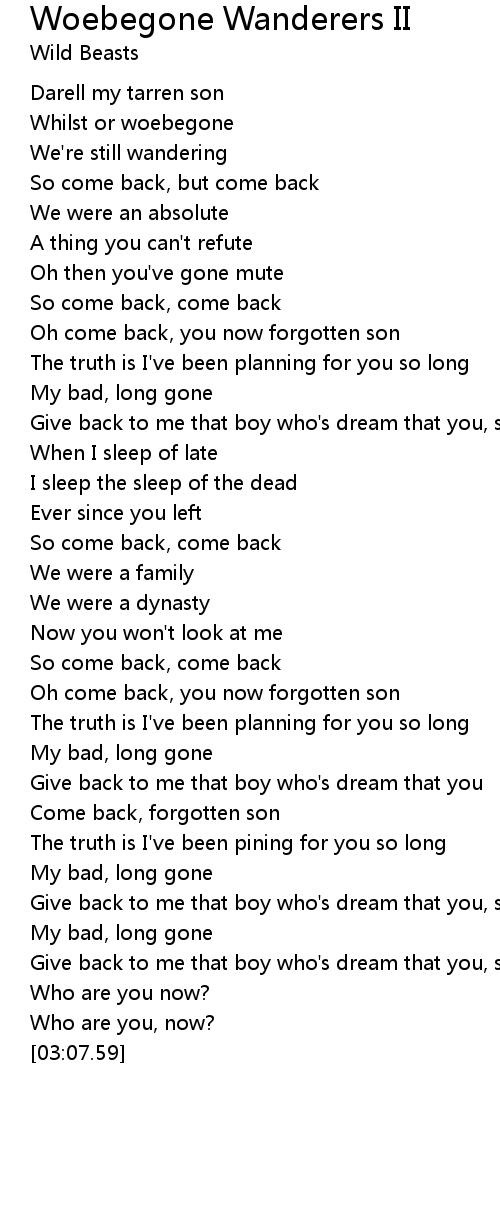 Oh come back, you now forgotten son |