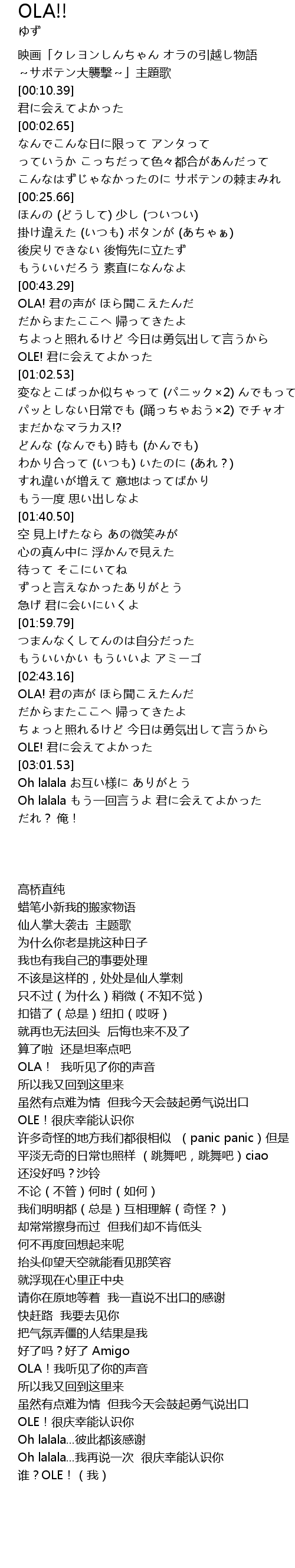 | [00:44.92] | OLA! 君の声が ほら聞こえたんだ |
