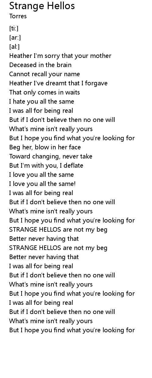 | [02:44.14] | STRANGE HELLOS are not my beg |