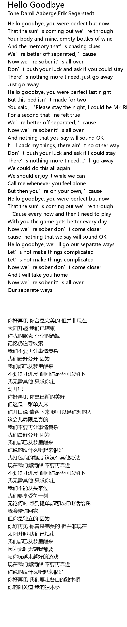 | [02:13] | Hello goodbye, you were perfect but now |