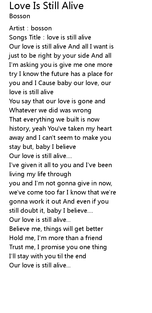 | [00:01.51] | Songs Title: love is still alive |