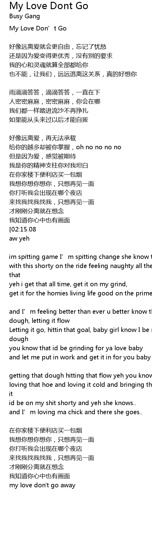 | [02:27.64][02:15.08][02:01.37] | my love dont go away |