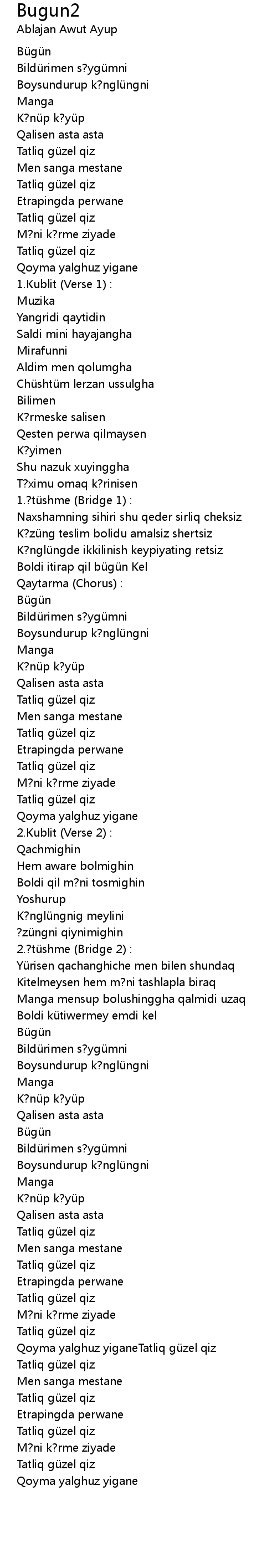 | [02:36.96] | Manga mensup bolushinggha qalmidi uzaq |