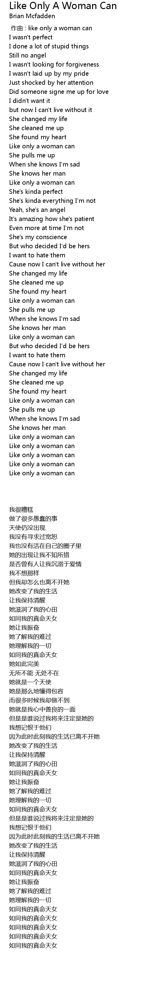 | [00:00.00] | 作曲 : like only a woman can |