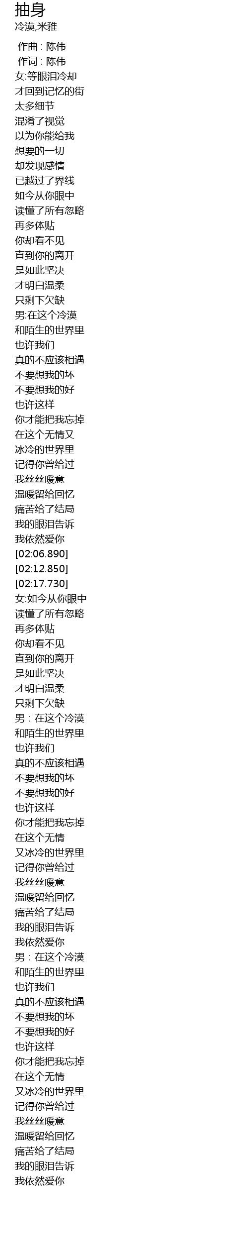 | [00:00.00] | 作曲 : 陈伟 |