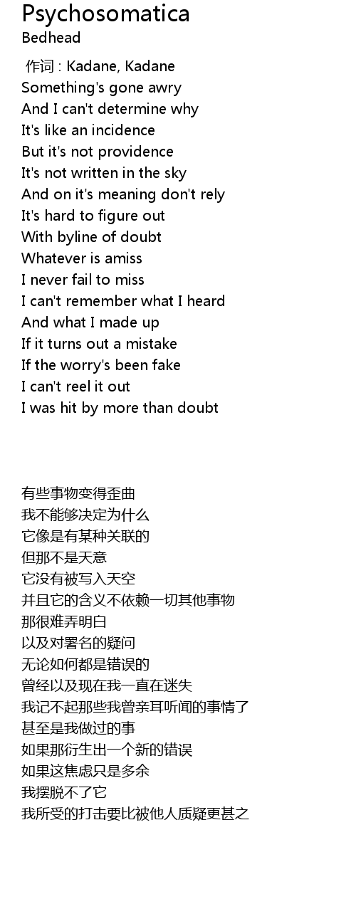 | [00:00.00] | 作词 : Kadane, Kadane |